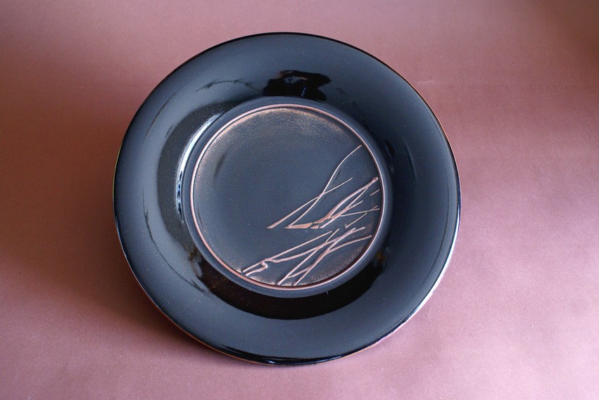 Platter, Tenmoku on Porcelin, Cone 10 Reduction, 15 inches, 1995